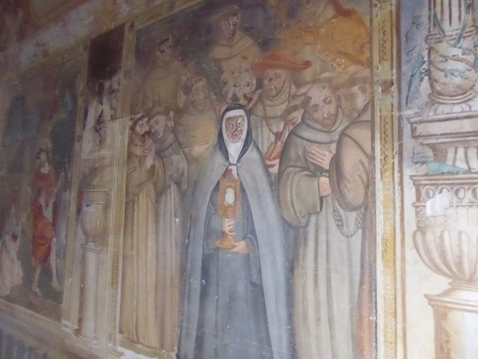 Aquí, otro detalle artístico, y es que en algunas de las capillas del claustro se conservan pinturas murales o frescos de los siglos XV y XVI.
